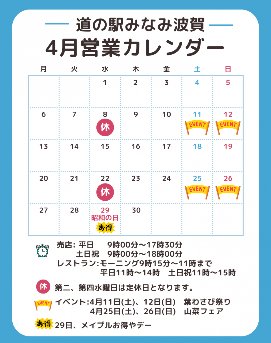 「道の駅みなみ波賀」からのお知らせ