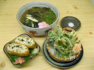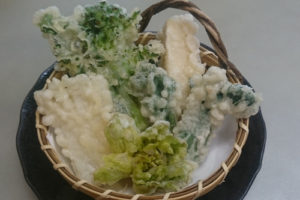 ふきのとう・タラの芽・山うど・タケノコ・菜の花などを天ぷらにしています。