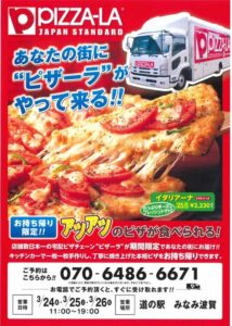 昨年の7月に続きピザ宅配の最大手の「ピザーラ」が道の駅みなみ波賀で出張販売をします。29年3月24日~26日です。