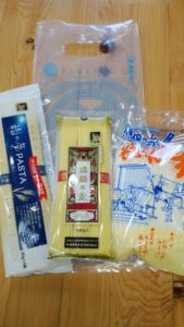 お土産セット*素麺バチ*龍の夢[中華麺]*龍の夢[パスタ]の3点 夏・夏・夏セール♪として、通常販売価格¥939-のところ⇒¥850-とお買い得です!その他、道の駅オリジナルのセット販売も特価になっています。ご近所さんのお土産としても、またご自宅用としてもいかがですか!