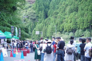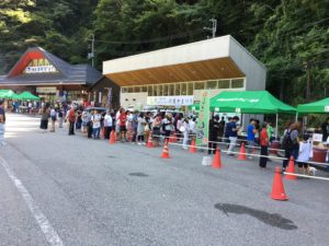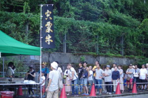 波賀町北部の山間部らしい、小風の中、心地よいスタートで宍粟牛まつりが始まりました。午前中はやはり〈避暑地はが〉だけあって涼しかったです。午後からは日差しもキツくなりましたが、皆さんお目当てのブース前で今か今かと愉しみに待たれていました。