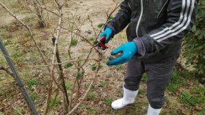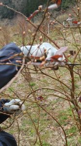 道の駅はが店舗の向かいにあるブルーベリー農園では、『冬剪定』という作業をされています。
