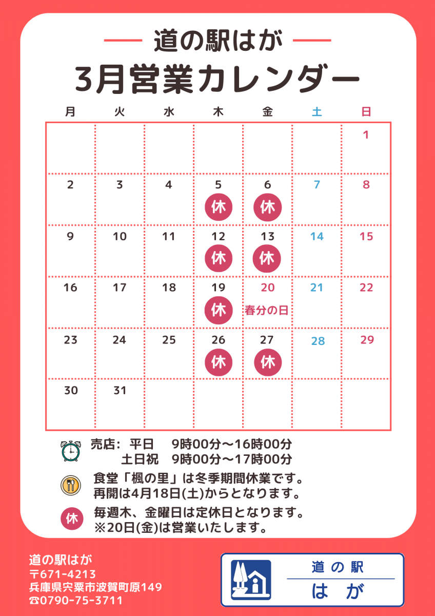 | 3月営業カレンダー | |