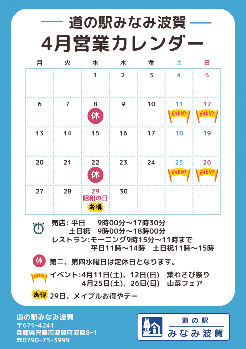 道の駅みなみ波賀 からのお知らせ